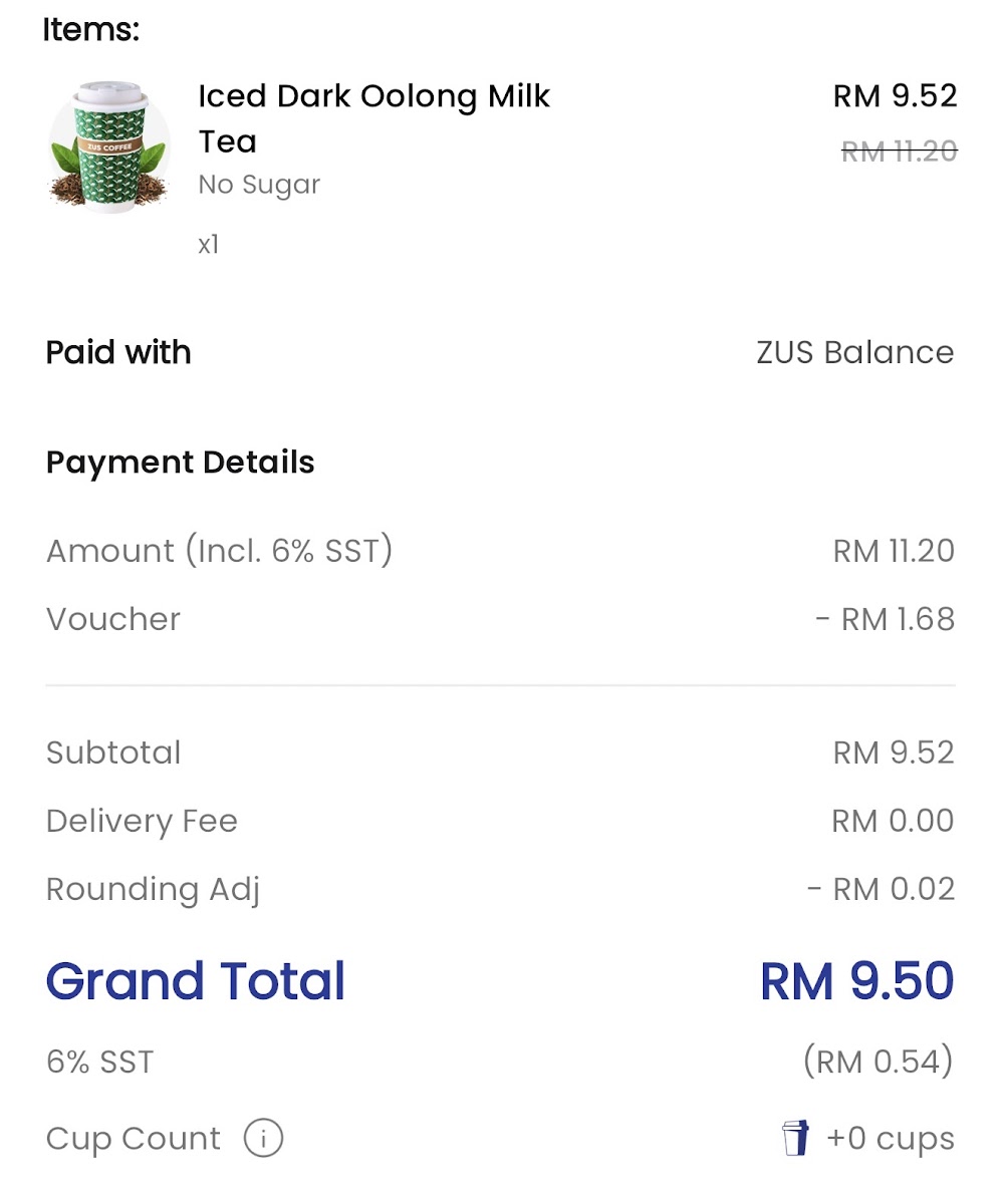 ZUS Coffee - Harbour Town, Lahad Datu, Sabah Menu